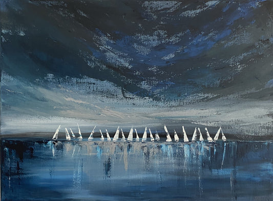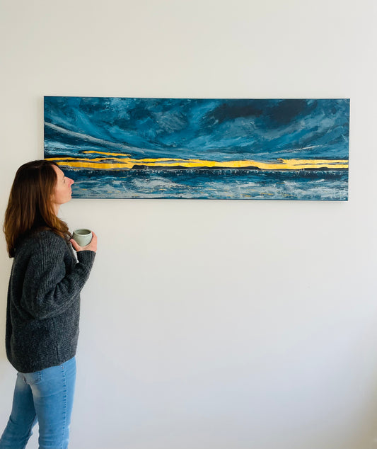 Former offshore sailor and ocean rower, Sarah draws on her experience of life at sea to bring the elements of the ocean in to your home. Whether it's a distant horizon or a fearsome storm. You can feel the breeze on your face and taste the salt in the air when you view Sarah's work.