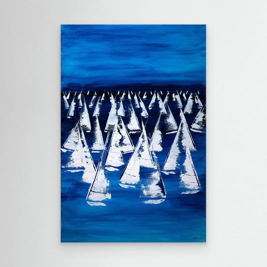 Contemporary blue boat paintings, originals and prints available. All classes of boats...