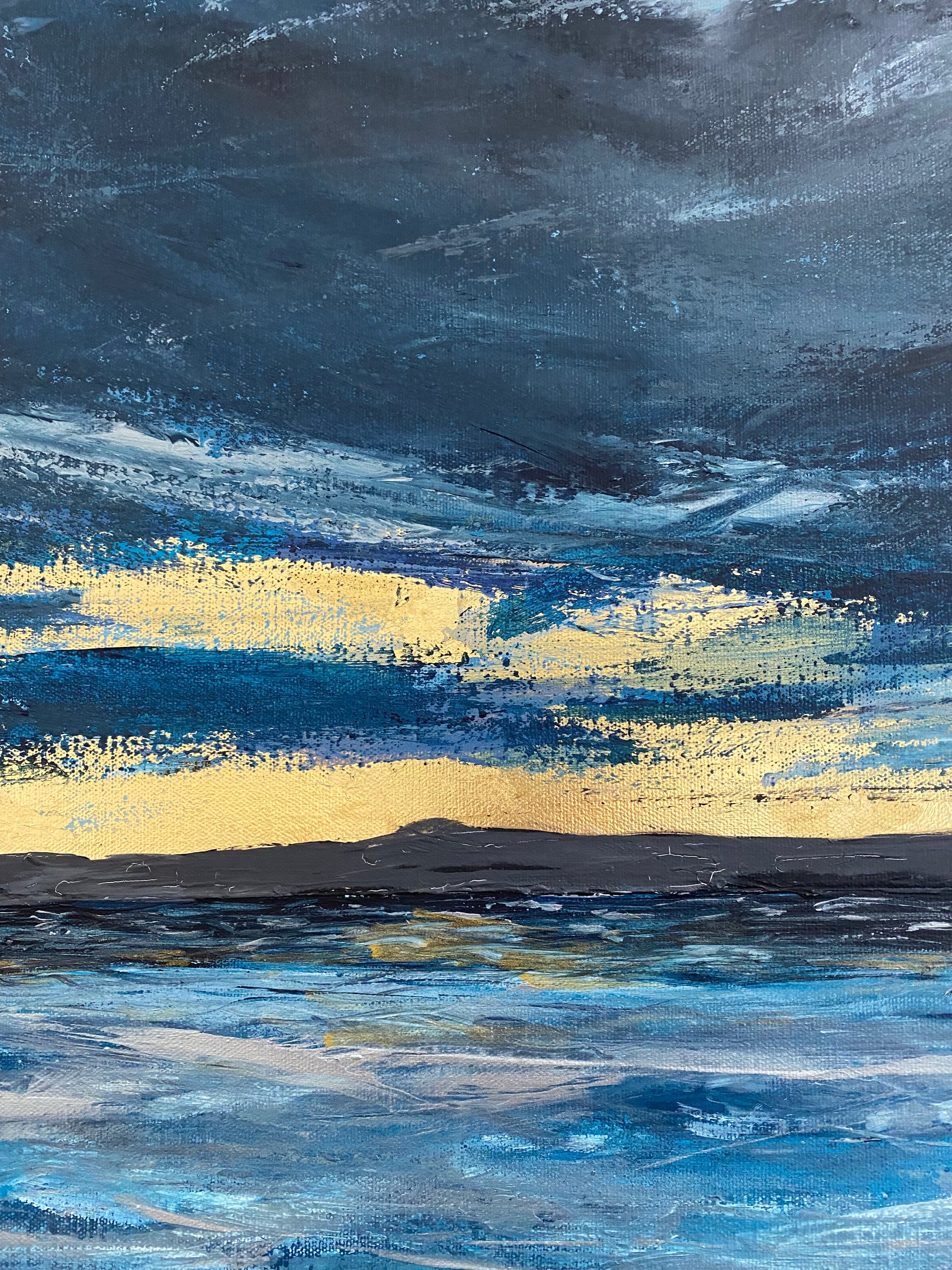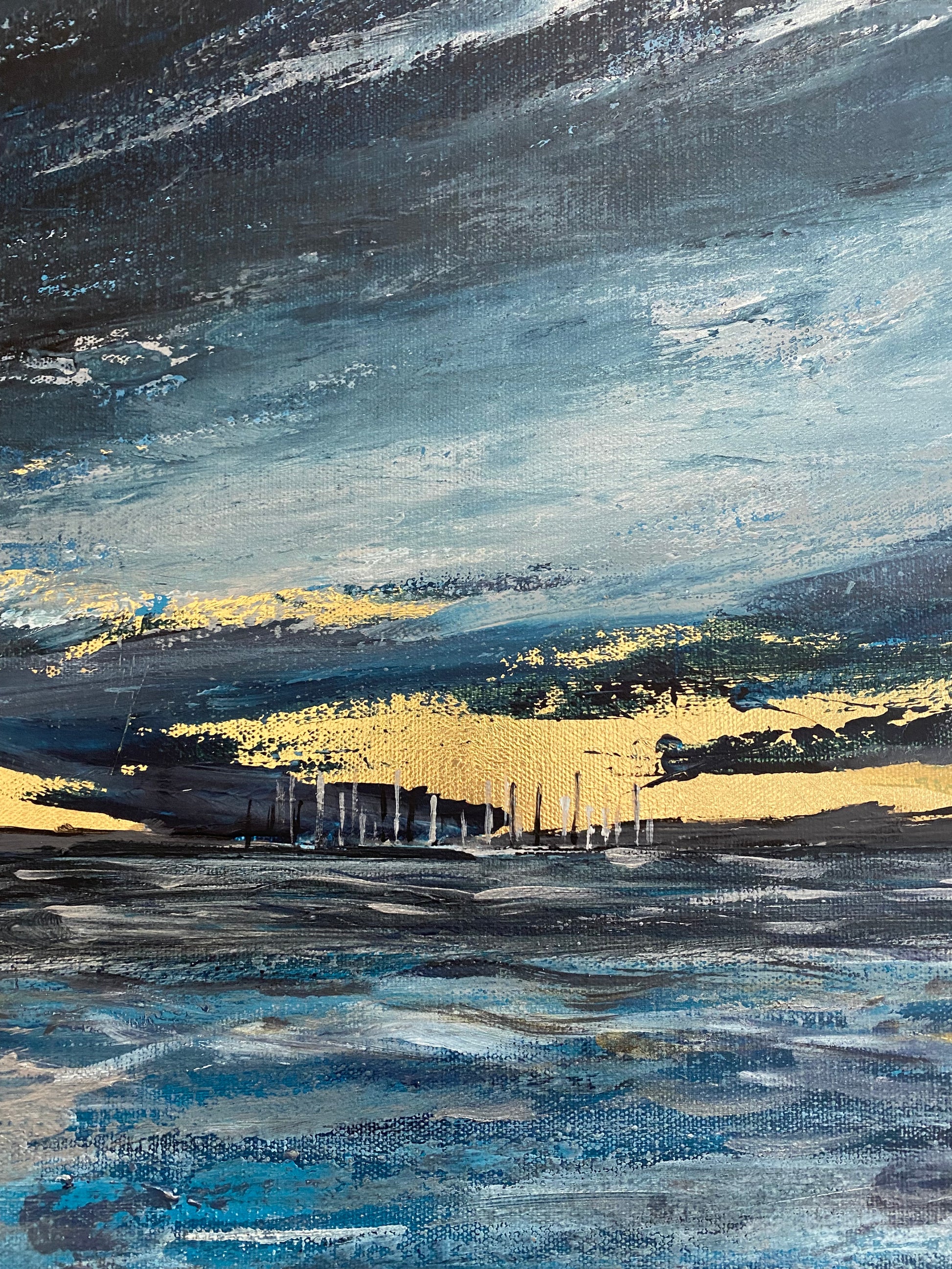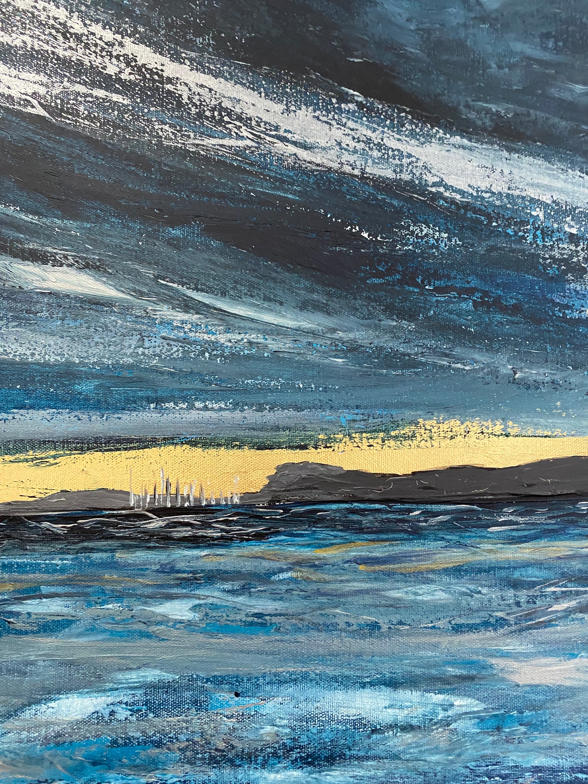 This piece was born out of emotion, painted to the haunting melodies of Karl Jenkins' The Armed Man. Like the music, the painting weaves calm and drama together—a soulful connection to nature’s power and resilience.